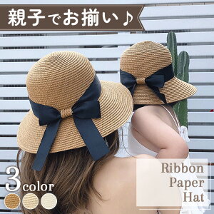 商品名:親子でお揃い! 選べる2サイズ 折りたたみ ゴム付き リボン ペーパーハット