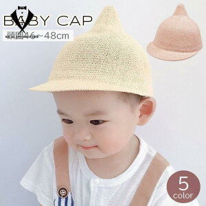 とんがりシルエットと麦わら風の素材がキュートなベビー用キャップ☆日よけとしてはもちろん、コーデのポイントとしても活躍してくれます?【カラーについて】生産ロットにより柄の出方や色の濃淡が異なる場合がございます。お使いのモ