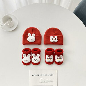 ニット帽・スタイル: フレッシュスウィート・主な素材: ポリエステル・帽子のトップスタイル: 丸型・つばのスタイル: つばなし・柄: 動物・カラー展開: シャイうさぎセット(厚手フリース)、赤ライオンセット(厚手