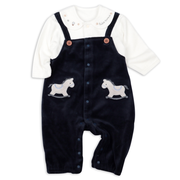 木馬のアップリケが付いた2wayドレスは可愛らしさがいっぱい! 2way仕様なので、カバーオールとしてもドレスとして長く使えるのが魅力。 新生児から使えるので、出産準備や出産祝いにもぴったり。 男の子用としてデザインされており...