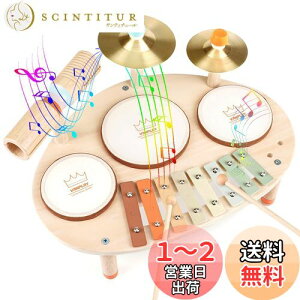 いろんな音に大興奮♪子供向けの木製の楽器おもちゃです。ドラム・シンバル・木琴・トーンブロック・ベルの子どもが大好きな5つの音が楽しめる。様々な指先の動きを通して、遊びながら指先トレーニング。高品質な木材を使用し...