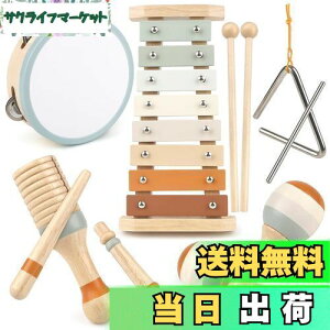 いろんな音に大興奮♪子供向けの木製の楽器おもちゃです。ドラム・シンバル・木琴・トーンブロック・ベルの子どもが大好きな5つの音が楽しめる。様々な指先の動きを通して、遊びながら指先トレーニング。高品質な木材を使用し...