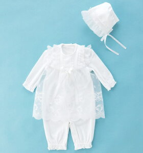見返し 面100% レース ポリエステル100%新生児服 ツーウェイオール ベンリードレス ドレス&カバーオール 日本製 画像をクリックしていただくと拡大