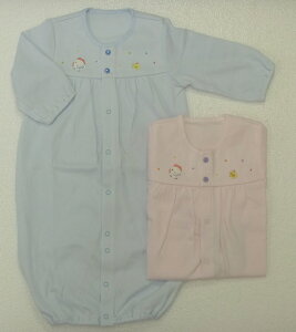 刺繍の色でブルーとホワイトに分けさせて頂きました ドレス&カバーオール サイズ 50〜70cm 綿100% スムース 新生児服 ツーウェイオール ベンリードレス ドレス&カバーオール 日本製 画像をクリ
