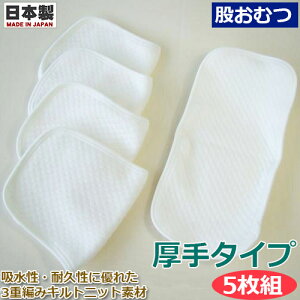 繰り返して使えてエコロジー! 厚手タイプの股おむつ立体縫製5枚入りです♪ ●たたむ手間のいらないお手軽成形股おむつです。 ●コンパクトなのでお洗濯の場所もとりません。 ●特殊な3重編みキルトニット素材なので、何回洗濯しても弾