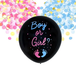 忘れられないサプライズを演出: この性別発表バルーンは、期待に満ちた性別発表の瞬間をお届けします。黒いバルーンには「男の子?女の子?」と白い文字があり、内部にはピンクまたはブルーのコンフェッティが入っています。バルーン