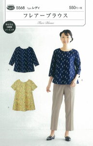 フレアーが優しく女性らしいAラインシルエットを作り出しているプルオンブラウス。 Aはボトムを選ばないブラウス丈で8分袖。 Bは重ね着もできるヒップが隠れるチュニック丈で半袖♪ 写真(2)に必要な材料とありますが、最初から付いている