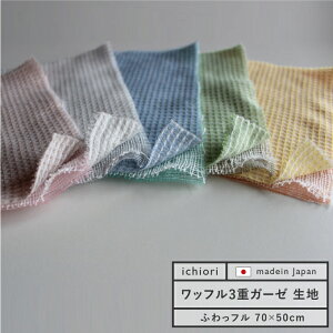 細めの糸を丁寧に織り上げたワッフル3重ガーゼです。 ワッフル層と2層のガーゼを1枚の生地として、一度に織り上げています。 各層の間には、空気の層ができるので 通気性に優れ、洗うほどにふんわりとしたボリューム感が生まれます。 サ