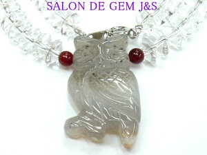 J&S【特別企画】★★★ ●ラッキーモチーフ!愛くるしい表情のフクロウ(不苦労)がデザインされたペンダントネックレスです。 ●幸運を呼ぶとされるラッキーモチーフのフクロウ(不苦労)をグレー系メノウで形づくり、赤メ