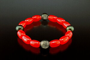 ラドンボール 4個(10mm珠 フェライト磁石 ラドンパウダーコーティング) 赤メノウ 12個(12×8mm) ビーズパーツ 8個(真鍮) [サイズ]約17cm(内周) [重量]約25g [中糸]ポリウレタンゴム...