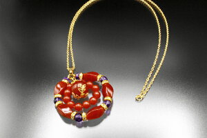 魅惑のイタリアン・レッド 赤メノウとガーネットの宝飾ネックレス天然赤メノウ10カラットを華麗に取り巻くのは真紅のガーネット20石。ネックレスには合計約70カラットの赤メノウとつややかな真珠が交互に連ねられ...