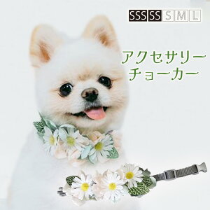オメカシペット。猫・超小型犬の花アクセサリーチョーカー。フレッシュなマーガレットやミントのお花でお作りした、花冠タイプのチョーカーです。