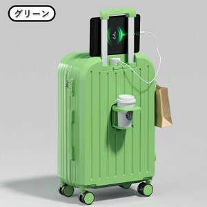 スーツケース 機内持ち込み キャリーケース Sサイズ フロントオープン 軽量 耐衝撃 USBポート カップホルダー フック搭載 修学旅行 キャリーバッグ Mサイズ カラー ● 全5色:グレー/ホワイト/ピンク/ブルー/グリーン...