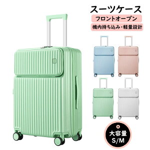 スーツケース 機内持ち込み キャリーケース Sサイズ フロントオープン 軽量 耐衝撃 USBポート カップホルダー フック搭載 修学旅行 キャリーバッグ Mサイズ カラー ● 全5色:グレー/ホワイト/ピンク/ブルー/グリーン...