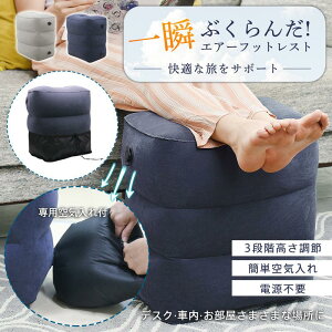 三段階に調節可能なフットレスト!旅行にピッタリの空気式フットレスト!足を乗せてリラックスできる便利グッズ。【フットレスト】【空気入れ】【ポンプ不要】旅行中の長時間の移動時や、デスク周りでの作業中にも使用でき、足を伸ば