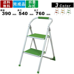 昇り降りも安定して行える手すり付き。折りたたみできる2段脚立。