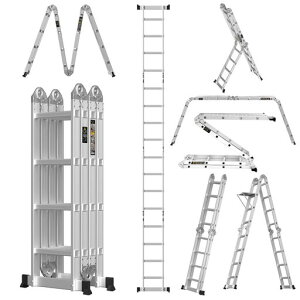 【一台多役、超変形ラダー登場】4段*4段多機能はしご場所にあわせて12変化!便利なハシゴ!はしごとして、脚立として、そしてなんと足場としても使用できるマルチなはしご、満を持して登場。使い方法は無限大。大掃除に、雪下ろしに、ガー