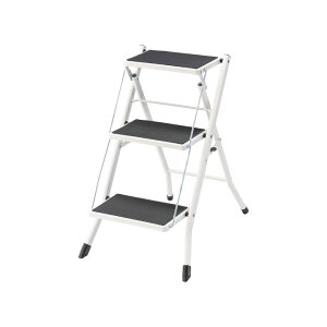 高いところに手が届く、簡単に設置できる3段脚立!大きめのステップで安全に昇り降り。折りたたんで収納、移動可。