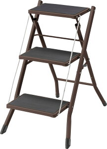 高いところに手が届く、簡単に設置できる3段脚立!手すり付きで安全に昇り降り。薄型タイプで折りたたんで省スペースで収納可。
