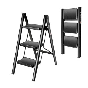 組み立て不要、広げるだけで使用可能! 狭いスペースにも収納可能です。 底にはプラスチックの滑り止めが付いている。 階段の表面は凸凹しているので、靴下を履いていても安全だ。 耐荷重150kgの頑丈なスチール製で、ステップ部分は十分な幅が...