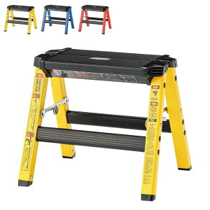 DIYやアウトドアライフに使いやすいツートンカラーの踏み台。ステップ部分はブラック、フレームはブルーやレッド、イエローを使いアクティブな印象に!