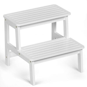 Focieulo 踏み台 脚立ステップ 2段 子供の 踏み台 竹製 ステップチェア 玄関 トイレ 観葉植物 台 室内キッチン ペット用階段 環境に優しい 丈夫 安定性(ホワイト) 【ステップ脚立サイズ】2段の踏み台のサイズは...