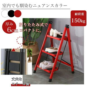 メイン素材:鉄【折りたたみ式3段4段脚立】高い場所での作業に便利な、折畳み式の2段3段4段脚立です。持ち手付きで、安定して上り下りができます。おしゃれな見た目で、家庭用におすすめです。【便利とスッキリ収納】収納時は厚さ約7cm