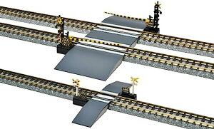 セット内容:遮断機・警報機/スロープ/渡り板各2セット レイアウトサイズ:W115H35D125(mm)(2セット使用した場合) ※画像の車両、線路は別売りです。