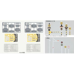 遮断かんはお好みの長さにカットして使用 ■踏切道路標識、高さ制限ゲートのパーツが付属 ■踏切警報灯や特殊信号発光器の赤色部分、遮断かんや踏切警標のゼブラ模様、列車進行方向指示器の矢印、踏切道路標識などは印刷済 ...