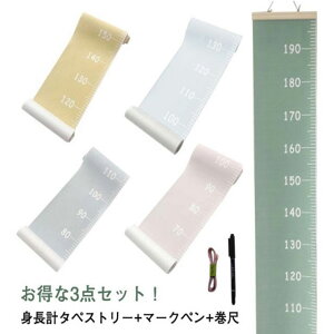 【お得な3点セット!】 【身長計タペストリー+マークペン+巻尺】【木の温もりを感じるキッズメジャー♪お子様の成長記録に。】優しい色合いで、インテリアに馴染むシンプルなデザイン。温かみのあるナチュラルな木材と...