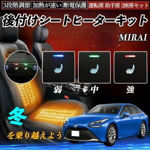 商品説明 適合車種MIRAI JPD20 R2.12- セット内容ヒーターパッド×4枚 スイッチ×2 ヒーターパッド止め具 商品の特徴 取り付け可能トヨタやダイハツなど、縦22mm×横22mmのブランクスイッチ2つで取り付け可能...