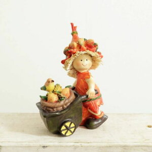 【子供が手押し車を押している人形の置物】帽子をかぶって愛くるしい表情がとても素敵で妖精のよう。荷台の上に小鳥が止まっています8分音符 【色々なところに飾れるオブジェ】机の上に置いたり、家具やコンソール...