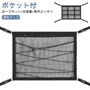 車 井字 収納 ネット 小物入れ付き 車内 カーゴネットジッパー付
