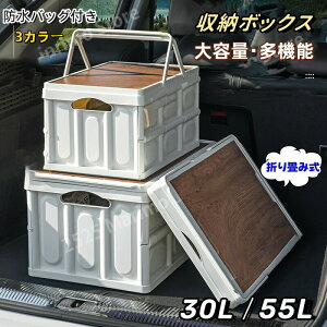 折りたたみ式コンテナボックス 30L 55L大容量 アウトドア コンパクトにたためる ふた付き収納ケース テーブルにも おしゃれ収納ボックス おしゃれ