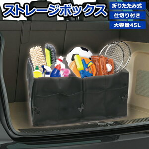 車用ストレージボックス スッキリ収納できる折り畳み収納ボックス! 大容量48Lで整理整頓。 ■ 折りたたみ式 必要な時にサッと開いて大活躍。 使用しない時は折りたたんでコンパクトに収納できます。 ■ 大容量48