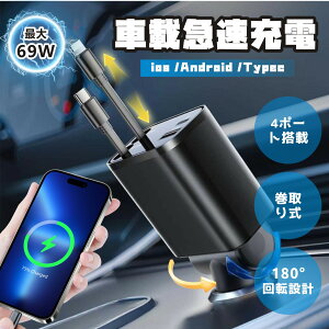 車内充電のストレスから解放!揺れに強くてスッキリ収納、そして超高速! 最大69W対応、全デバイスを一括充電! ? ガッチリ固定でブレない! 段差・急停止でも抜けにくく、常に安定した充電環境を維持。 ? スマートな収納式ケーブル 最長8