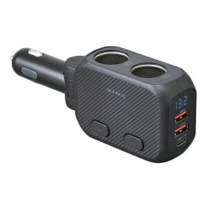 車内のシガーソケット(アクセサリーソケット)を2つにできる2連ソケット。スマホやタブレットを2台同時に充電できるUSBポート付き。12V/24V車対応。