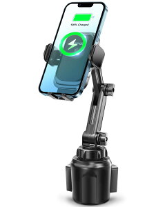 【使いやすい】カップホルダーフォンマウントには、ワイヤレス充電器と調整可能なベースが付いています。車、SUV、トラック、スポーツカー、ステーションワゴン、ジープ、バス、バン、移動式カフェテリアなど、さまざまなカップホルダ