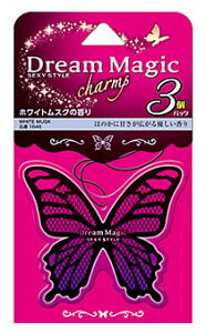 予めご了承ください。 名 称 ドリームマジック チャーム ホワイトムスク 内容量 3個 特 徴 ◆ペーパー吊り下げタイプの車用芳香剤。 ◆デザインの蝶が揺れ