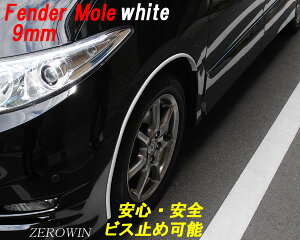 フェンダーモール 9mm幅 ホワイト ビス止め可能タイプ ドレスアップ&ボディー保護に最適! 足回りをスタイリッシュにドレスアップ 片側9mmのワイド化 フェンダーからはみ出たタイヤ、ホイールの問題も解消...