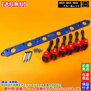 RB20、RB25、RB26エンジン用 R35 GT-R用イグニッションコイル 取付用プレート ブルー(アルマイト加工) 強化イグニッションコイル 6本SET(赤色) 変換用専用...