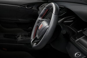 シビックセダンFC1 ※海外仕様車に対しての適合確認はしておりません 無限のコーポレートカラーをしつらえたスペシャルカラー 材質はステアリング上下にはカーボンを採用、左右のグリップ部は合皮製パンチング ※標...