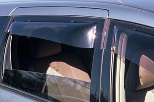 雨の日の運転に欠かせない、ドアバイザー1台分です。喫煙者様はもちろん、雨の日も快適に換気をしたい方は是非!また、バイザー上部にメッキモールが着いており、高級感を演出します!取付は両面テープと取付金具のダブルで行います。