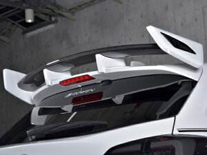 専用トランクリッドとの組み合わせで迫力とスマートさを両立させるGTウイング。カーボンウイング部:カーボン製(クリア塗装)ステー・翼端板:アルミ。