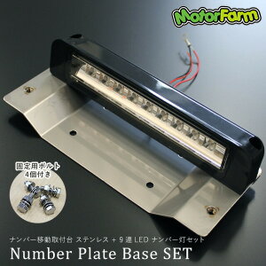商品 ファーム ジムニー ナンバー移動取付台 ステンレス + 9連LEDナンバーライト セット 汎用 取付台 素材 ステンレス製 ナンバー灯 素材 プラスチックカバー 取付台 サイズ (約)W23cm x H9.5cm x 最大D1....