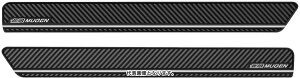 乗降時に足が当たることで付いてしまう汚れやキズを防ぐスカッフプレート。上質な雰囲気の中にスポーティーさを演出するカーボン柄のブラック色を採用。スーパーハイボスカル素材により機能性と質感を両立。フロント2枚セット。※長時