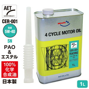 高性能な100%化学合成油であるPAO(グループW)をベースに、専用添加剤とエステルを用いた独自の処方により開発された、レース車・スポーツ車向け高性能4サイクルエンジンオイル 特長:AZ独自のエステルベースの添...