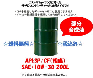 ●ガソリンディーゼル兼用エンジンオイル 【仕様】 SAEグレード:10W30 性能レベル:SP ベースオイル:部分合成油 ※ドラム缶の色は変更になる場合があります。 ※再生ドラム缶を使用しておりますので