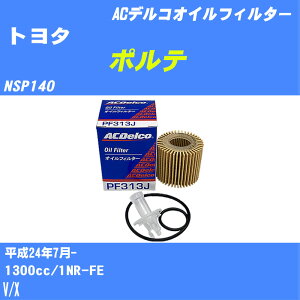 ≪トヨタ ポルテ≫ オイルフィルター【年式型式】平成24年7月-/NSP140【エンジン型式】1NR-FE【数量】1点ACデルコ PF313J オイルエレメント 【H10ZKN】