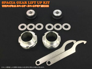 商品紹介スペーシア・スペーシアギア用のリフトアップキット。純正のショックアブソーバやスプリングを交換することなく専用スペーサーまたはネジ式車高調整アジャスターで車高を調整。純正スプリングでアップさせる事で乗り心地の悪
